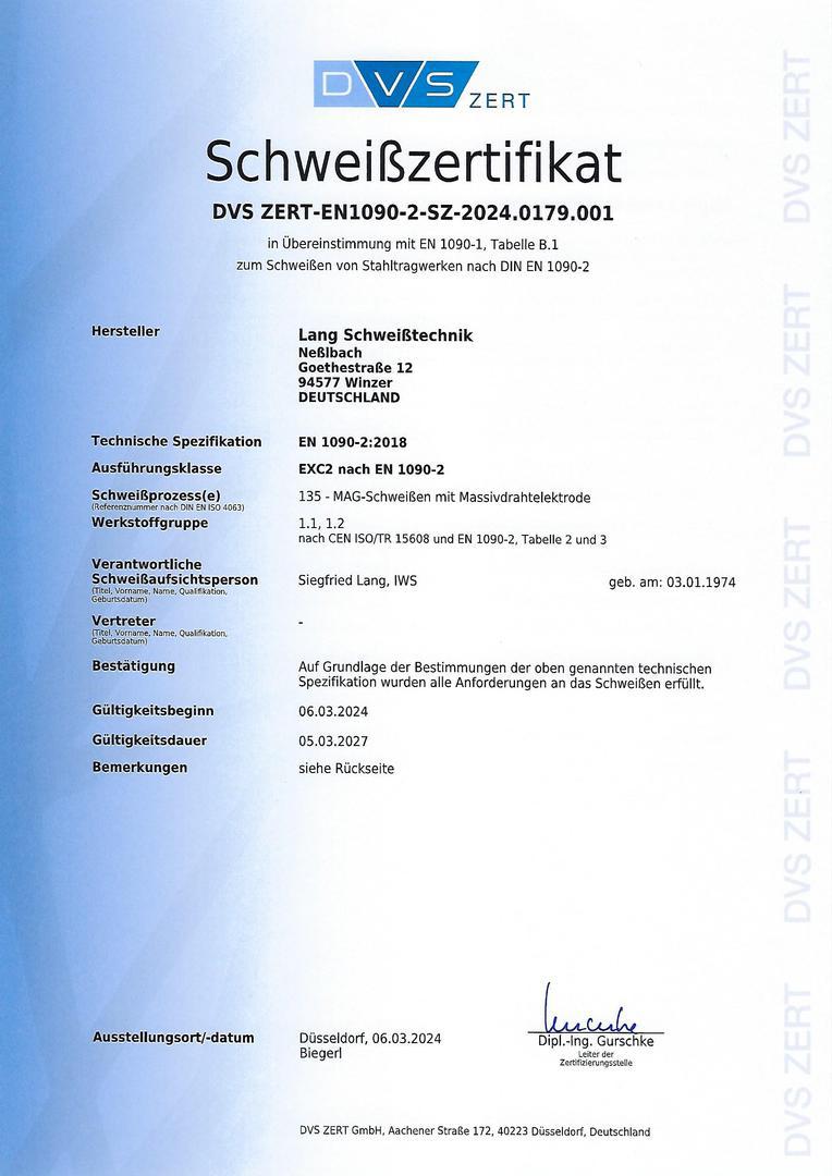 Lang Schweisstechnik Goethestr. 12 94577 Winzer